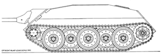 What we get from assembling all of this is a pretty compact tank (hull height 2m, turret is also pretty short), with great mobility (power to weight ratio of 18 to 21 HP/ton and a suspension rated 65 km/h), reasonable frontal armor (same as the Panther, enough to duke it out with Sherman and T-34) and a gun ideal for ambushes, short ranged but with excellent armor penetration and a good HE round. Perhaps a tank not as impressive as the bigger felines but still the peak of WWII German engineering.